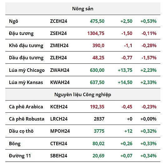 Thị trường nông sản chia hai nửa xanh đỏ trong đầu phiên tối. Giá khô đậu tương (ZMEH24 -0,28%) hiện đang chìm trong sắc đỏ trước triển vọng nhu cầu khô đậu thu hẹp tại Trung Quốc. Sản lượng thức ăn chăn nuôi của Trung Quốc trong 11 tháng đầu năm nay đã tăng, nhưng tỷ trọng khô đậu tương làm nguyên liệu thô đã giảm 4,44 triệu tấn (11%) so với cùng kỳ năm 2022. Nguyên nhân là do Bắc Kinh đang nỗ lực giảm sự phụ thuộc vào đậu tương nhập khẩu, nhằm đảm bảo an ninh lương thực.
