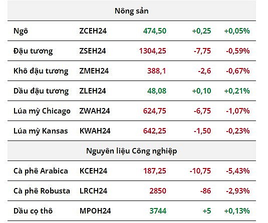 Giá lúa mì (ZWAH24 -1,07%) hiện đã quay đầu giảm mạnh, xóa bỏ toàn bộ đà hồi phục của phiên sáng, do triển vọng nhu cầu lúa mì của Mỹ sụt giảm. Cụ thể, trong báo cáo Xuất khẩu hàng tuần (Export Sales), từ 15/12 đến 21/12, Bộ nông nghiệp Mỹ (USDA) ghi nhận bán hàng lúa mì đạt 276.406 tấn, giảm 14,3% so với tuần trước đó, cho thấy nhu cầu thấp từ thị trường trước sự cạnh tranh đến từ nguồn cung tại Nga và EU.