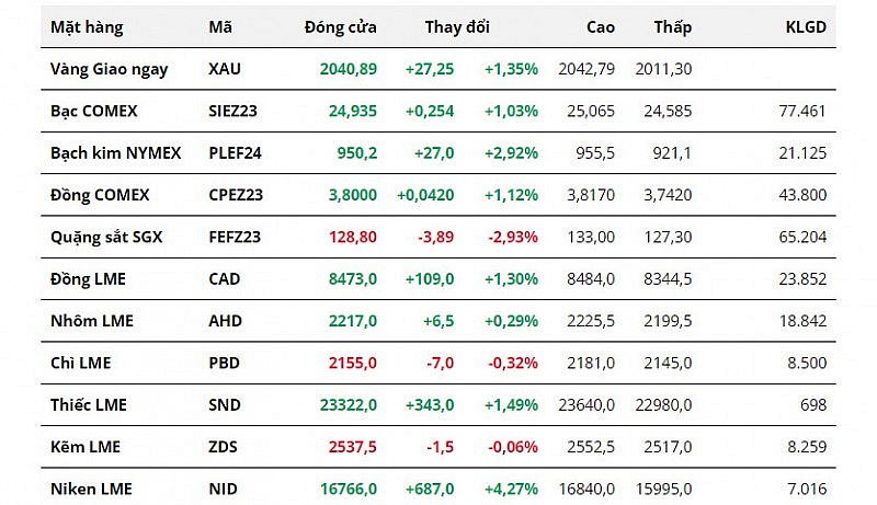 | Giá kim loại quý có thể giảm, giá đồng giằng co do dữ liệu kinh tế trái chiềuGiá đồng và quặng sắt tăng nhờ lo ngại nguồn cung gián đoạnGiá kim loại tăng nhờ cả yếu tố vĩ mô và cung - cầu |