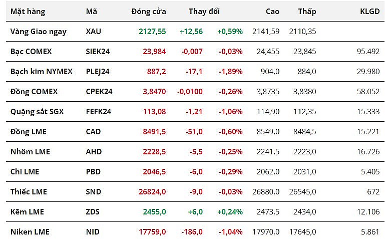Đối với kim loại cơ bản, giá đồng COMEX giảm hai phiên liên tiếp, chốt phiên tại mức 3,84 USD/pound sau khi giảm 0,26%. Niềm tin về triển vọng phục hồi của nền kinh tế Trung Quốc bị lu mờ đã gây áp lực lên giá đồng trong phiên hôm qua.