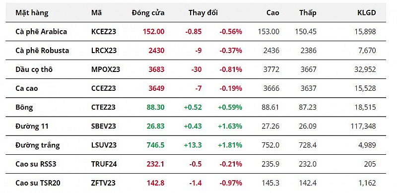 Ở chiều ngược lại, giá 2 mặt hàng đường đều có sự suy yếu với mức giảm lần lượt 0,56% của Arabica và 0,37% của Robusta. Đồng USD tăng trở lại kết hợp cùng tiến hiệu tích cực trong tồn kho cà phê trên Sở ICE đã gây áp lực lên giá.