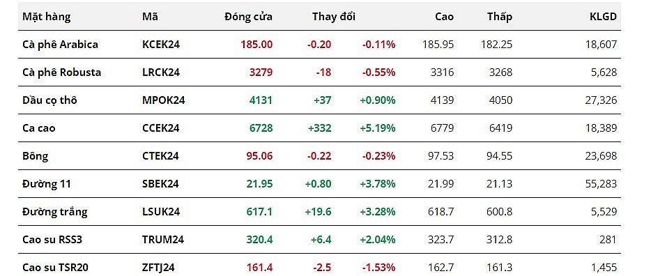 Ở chiều ngược lại, giá hai mặt hàng cà phê giảm thêm lần lượt 0,11% đối với giá Arabica và 0,55% đối với giá Robusta. Thông tin cơ bản trái chiều trước sự suy yếu của tỷ giá USD/BRL và những tín hiệu tín cực từ nguồn cung đã khiến giá cà phê giằng co trong phiên.