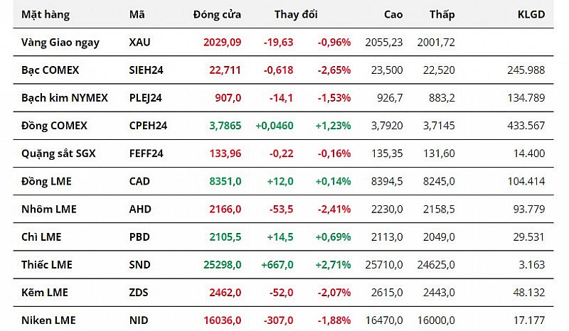 Trái ngược lại, giá quặng sắt giảm nhẹ 0,16% xuống còn 133,96 USD/pound trong bối cảnh tăng trưởng kinh tế Trung Quốc yếu hơn kỳ vọng. GDP quý IV/2023 của Trung Quốc đạt mức tăng trưởng 5,2% so với cùng kỳ năm ngoái, thấp hơn 0,1 điểm phần trăm so với dự báo. Doanh số bán bất động sản Trung Quốc giảm 8,5% trong năm 2023, trong khi số vốn huy động của các nhà phát triển giảm 13,6%, phản ánh lĩnh vực nhà đất, vốn sử dụng lượng lớn sắt thép, vẫn đang chưa thể đi lên từ đáy. Điều này đã ảnh hưởng trực tiếp tới giá sắt thép vốn nhạy cảm nhất với dữ liệu và động thái kinh tế tại Trung Quốc.