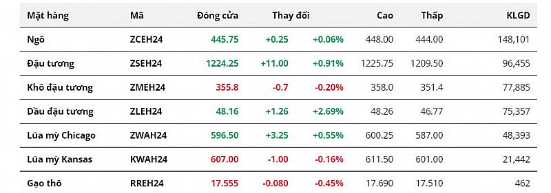 Ngoài ra, Imea mới đây đã hạ ước tính năng suất đậu tương niên vụ 23/24 của bang gieo trồng lớn nhất Brazil, Mato Grosso, xuống 47,9 giạ/mẫu, thấp hơn 7,4% dự báo hồi tháng 12, do El Nino đã gây ra khô nóng kéo dài. Những thông tin cho thấy triển vọng sản xuất kém tại Brazil liên tục xuất hiện mặc dù không còn là yếu tố mới, nhưng vẫn góp phần hỗ trợ nhẹ cho giá đậu tương. Ngược lại, hoạt động xuất khẩu kém khả quan của Mỹ đã phần nào hạn chế lực mua trong phiên vừa rồi. Cụ thể, khối lượng giao hàng đậu tương trong tuần trước đã giảm xuống còn 1,16 triệu tấn, so với mức 1,28 triệu tấn trong báo cáo tuần trước.