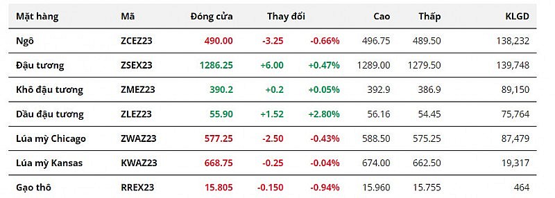 Giá lúa mì cũng đóng cửa phiên hôm qua trong sắc đỏ với mức giảm nhẹ 0,43% sau hai phiên tăng mạnh trước đó. Việc thị trường đón nhận những thông tin tích cực mới về triển vọng nguồn cung tại Nga đã khiến giá lao dốc trong phiên tối và đánh mất hoàn toàn mức tăng trong phiên sáng.