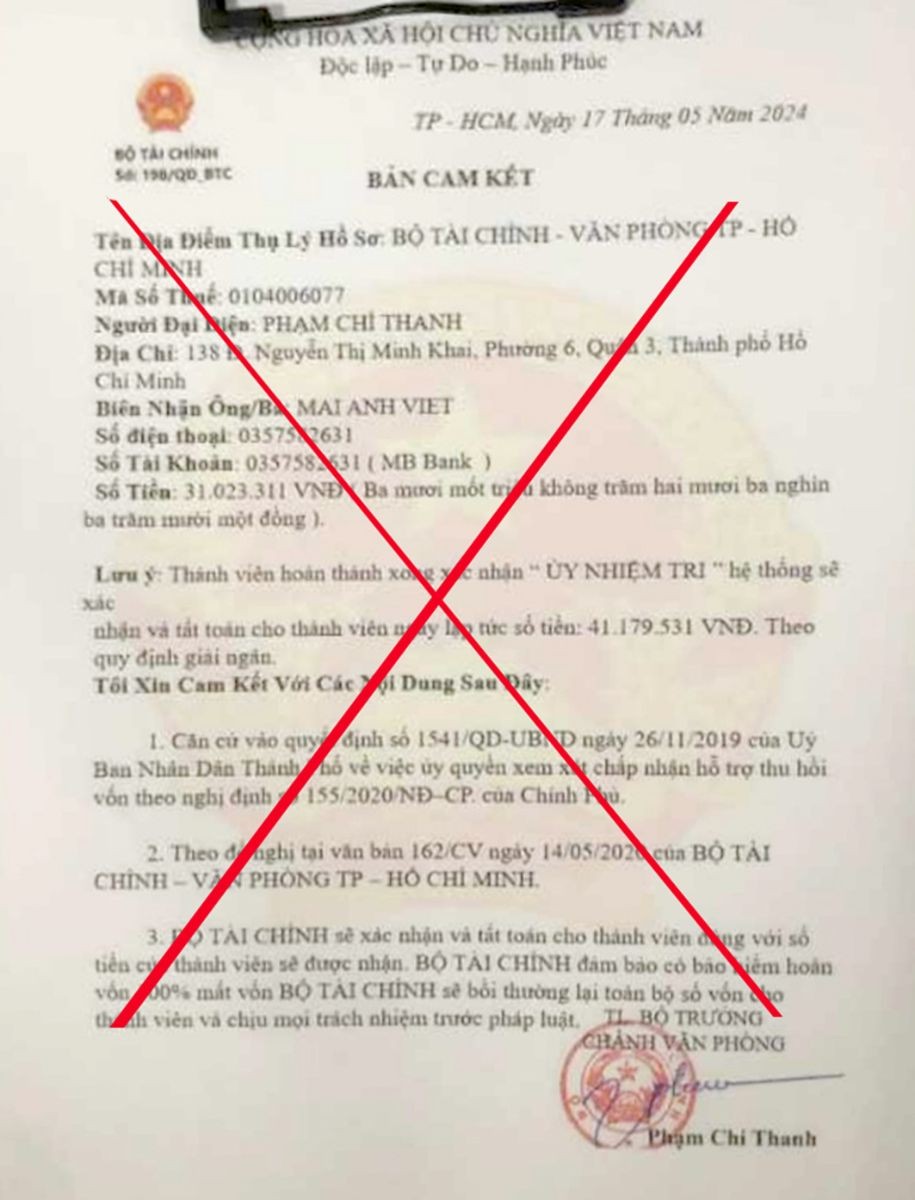 Tình trạng giả mạo thường gặp nhất là giả mạo giấy xác nhận ủy quyền, giả mạo bản cam kết thực hiện ủy quyền và tất toán tiền… để yêu cầu người dân chuyển tiền cho các đối tượng lừa đảo thông qua website giả mạo website của Bộ Tài chính.