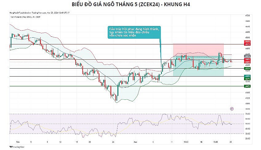 Trong bối cảnh lo ngại về tình trạng ngập úng tại Argentina đã phần nào hạ nhiệt, giá ngô có khả năng duy trì sắc đỏ trong phần còn lại của phiên hôm nay. Bên cạnh đó, nếu khối lượng giao hàng ngô tại Mỹ ghi nhận sụt giảm trong báo cáo tối nay, giá có thể hướng xuống vùng 435 trong phiên tối.