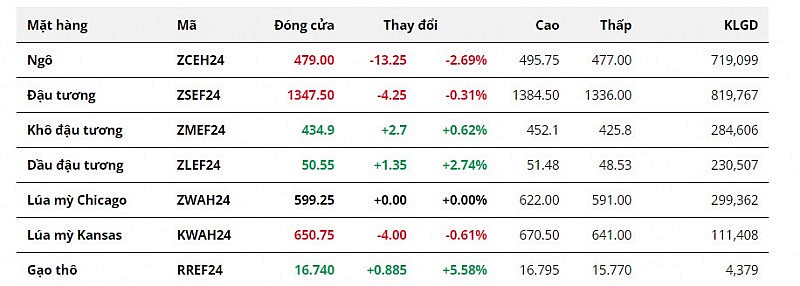 Trong khi đó, tồn kho lúa mì của Mỹ và thế giới niên vụ 23/24 được dự báo cao hơn đáng kể so với dự đoán của thị trường đã gây sức ép mạnh đến giá lúa mì. Ở chiều ngược lại, cuộc tấn công bất ngờ của Nga vào tàu dân sự ở Biển Đen làm dấy lên lo ngại về hoạt động vận chuyển ngũ cốc qua khu vực này. Đây là thông tin tác động "bullish" đến mặt hàng này và hạn chế đà giảm của giá.