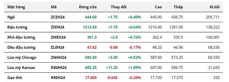 Các mặt hàng nông sản diễn biến khá ảm đạm trong phiên hôm qua và chỉ đóng cửa với mức biến động không đáng kể, chưa tới 1%. Đây là phiên đầu tiên thị trường ngô kết phiên trong sắc xanh sau chuỗi liên tiếp suy yếu. Rủi ro địa chính trị kéo theo triển vọng thương mại giữa các nước có thể sẽ ảnh hưởng lên cơ cấu cung cầu nông sản toàn cầu là yếu tố chính giúp thị trường ngũ cốc hồi phục.