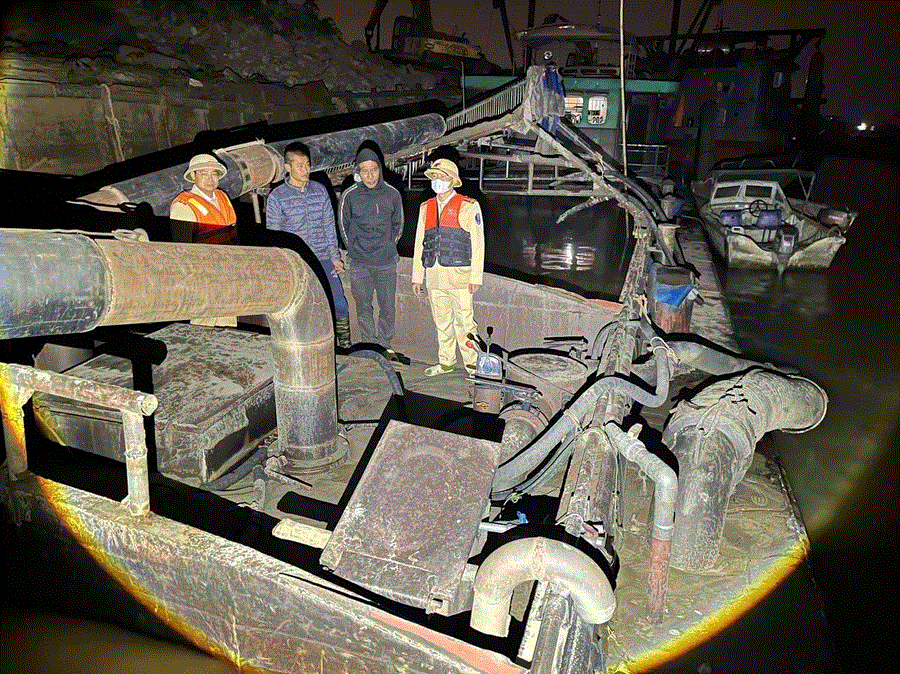 Làm việc với lực lượng chức năng, 2 người này không xuất trình được giấy phép khai thác khoáng sản cũng như bất kỳ giấy tờ liên quan đến phương tiện và hoạt động khai thác. Kiểm tra thực tế, tổ công tác xác định khoang chứa của tàu đã tích trữ khoảng 160m3 cát vừa được hút từ lòng sông Hồng.