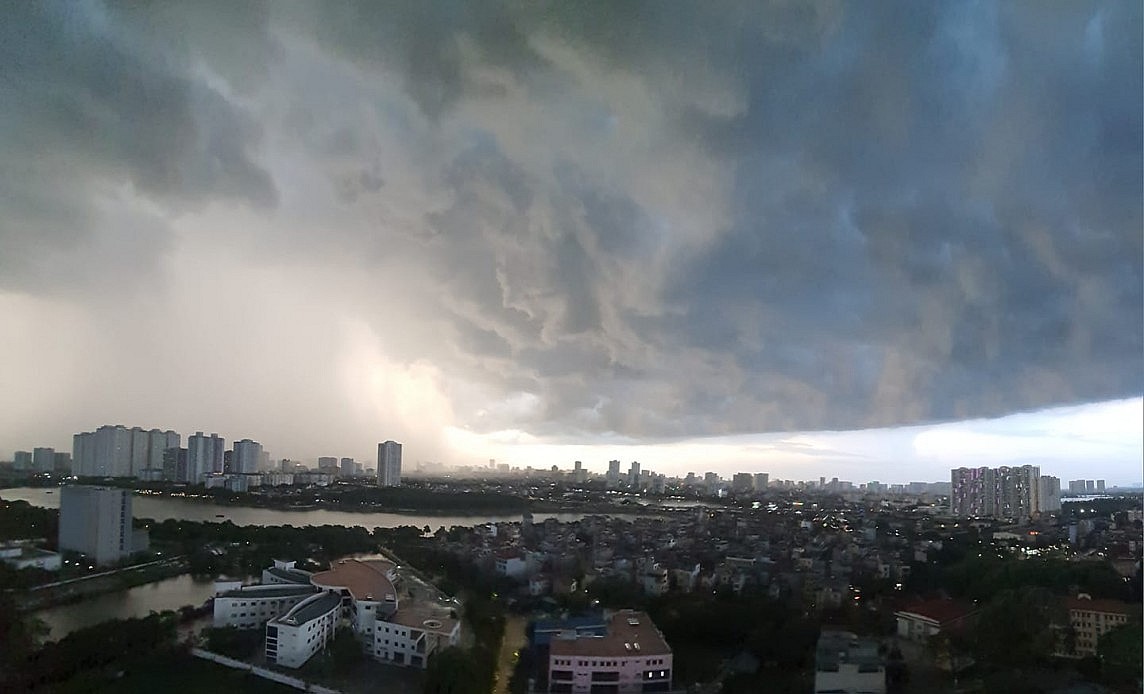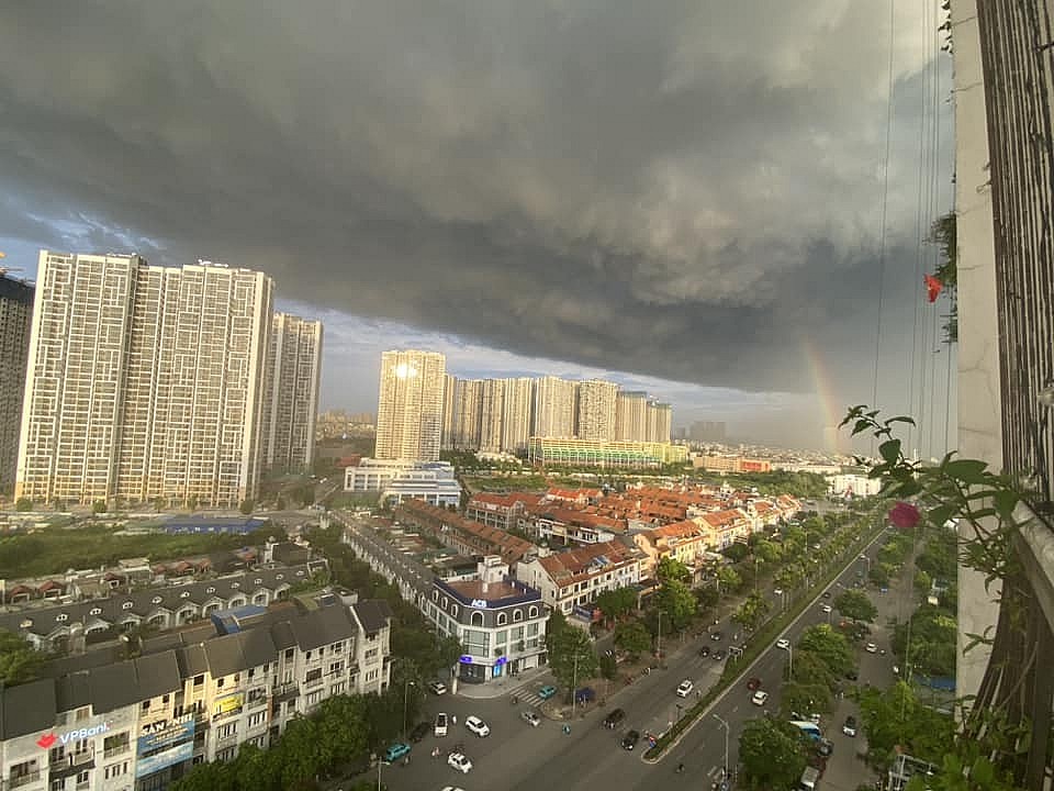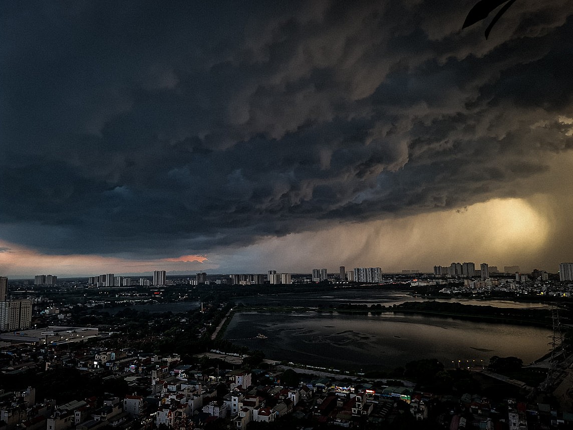 Chiều tối 29/6, bầu trời Hà Nội xuất hiện mây đen vần vũ, nhiều người nhanh tay chụp lại được những hình ảnh đáng sợ như trong phim khoa học viễn tưởng.