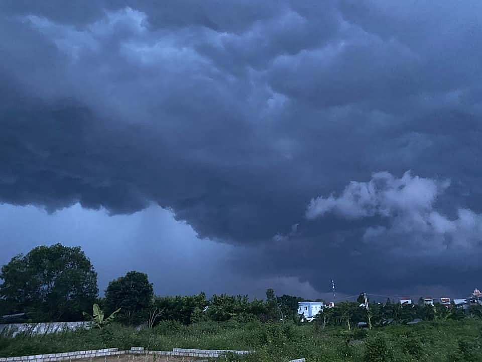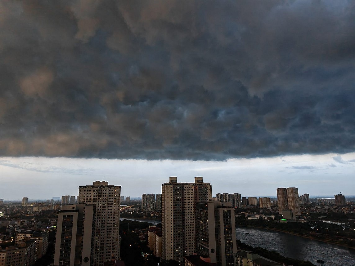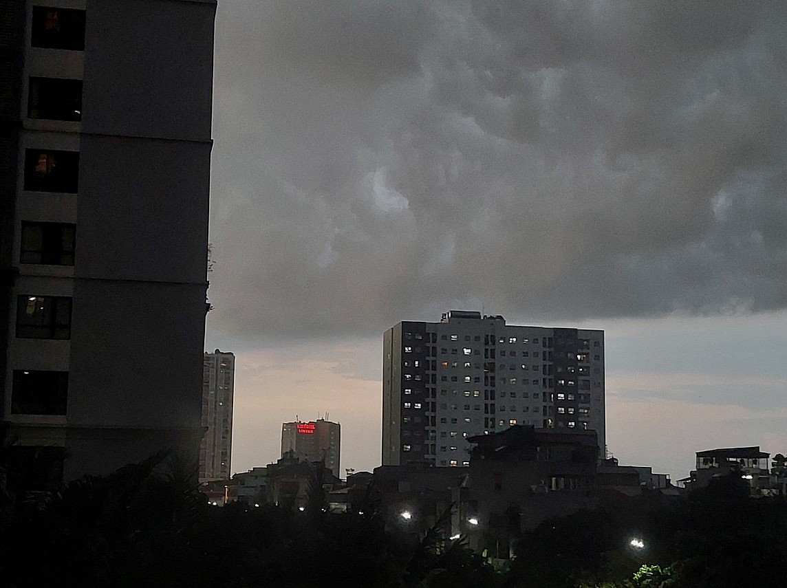 Hà Nội: Hình ảnh mây đen vẫn vũ trên bầu trời trước cơn dông như phim viễn tưởng