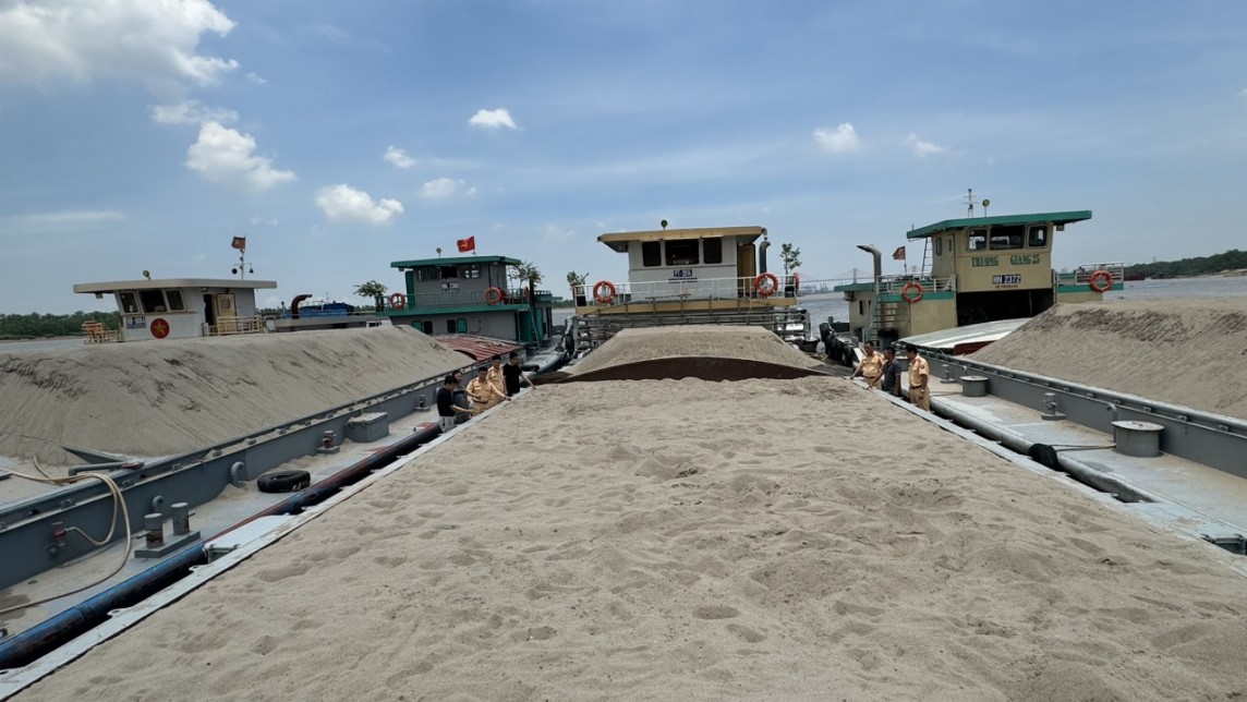 | Lực lượng chức năng tạm giữ hơn 3.500 m3 cát liên quan các đối tượng đánh bạc. Ảnh: CACC |