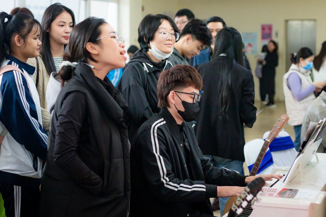 Sinh viên đàn, hát sử dụng nhạc cụ của các doanh nghiệp kinh doanh, đào tạo lĩnh vực âm nhạc. |