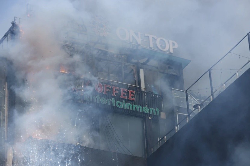 Theo các nhân chứng, vụ cháy xuất phát từ một tia lửa của tấm biển quảng cáo điện tử quây kín một mặt của toà nhà. Tuy cháy to nhưng thực sự vẫn còn may mắn bởi đám cháy xảy ra ban ngày, khu vực cháy thời điểm xảy ra vụ việc không có người tụ tập uống cà phê, lực lượng công an chức năng hành động tổng lực không cho đám cháy lan xuống các tầng dưới và khu vực xung quanh.