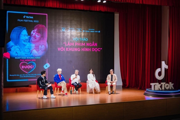 Song song đó, TikTok Film Festival 2022 cũng đã triển khai chuỗi hội thảo “Làm phim ngắn với khung hình dọc” nhằm hỗ trợ các bạn trẻ yêu điện ảnh có cơ hội được tìm hiểu và tiếp thu thêm những kinh nghiệm và chia sẻ quý báu từ khách mời là những tên tuổi nổi tiếng trong giới điện ảnh Việt Nam. Chuỗi hội thảo được tổ chức lần lượt tại Trường Đại học Quốc tế Hồng Bàng và Trường Đại học Hoa Sen đã nhận được sự đón nhận của đông đảo từ các bạn sinh viên cũng như những người quan tâm đến môn nghệ thuật thứ 7.