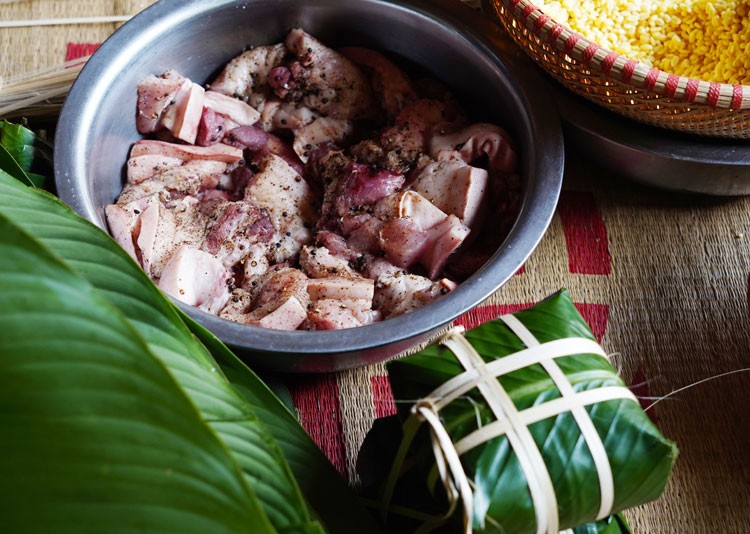 Ngoài đỗ, nhân bánh cần có thêm thịt ba chỉ hoặc nạc vai tươi sống trộn kèm gia vị muối, tiêu... vừa đủ, khi ăn sẽ đậm đà hơn.