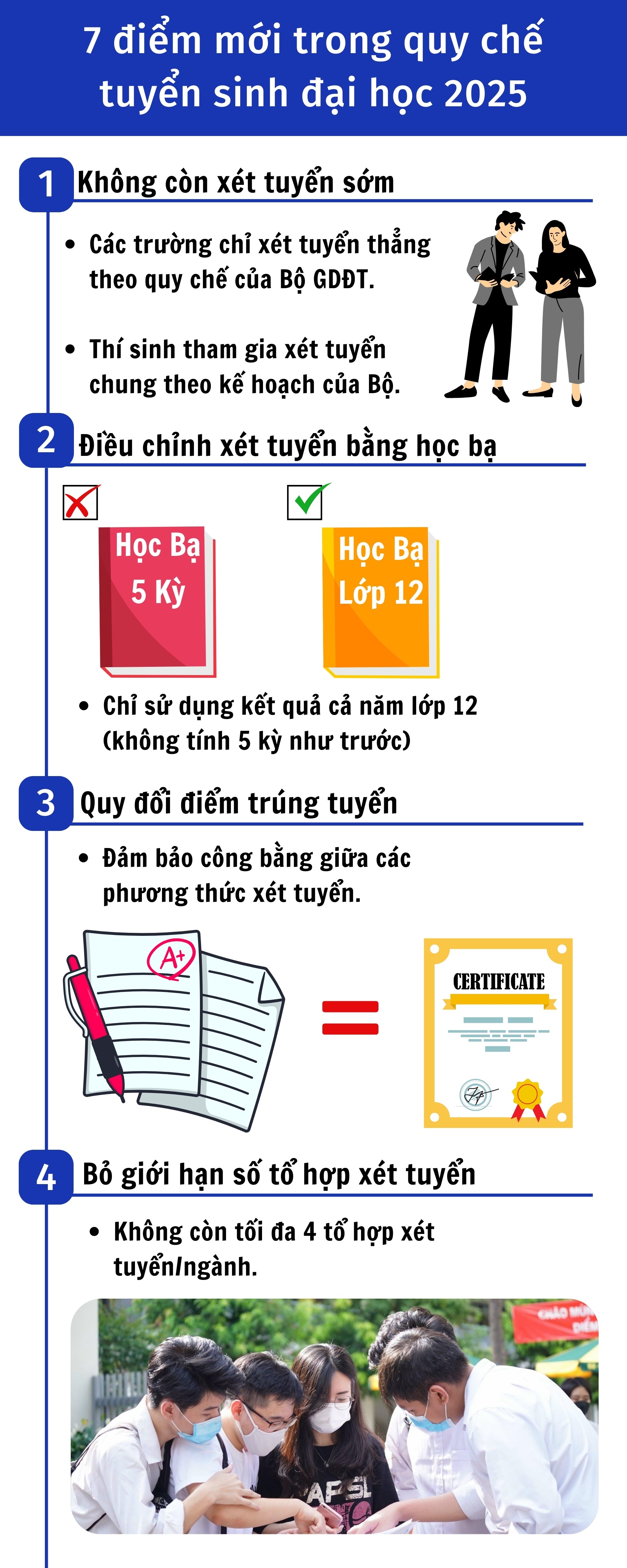 Năm 2025 là năm đầu thi tốt nghiệp THPT theo chương trình mới, quy chế tuyển sinh sẽ có nhiều điểm mới.