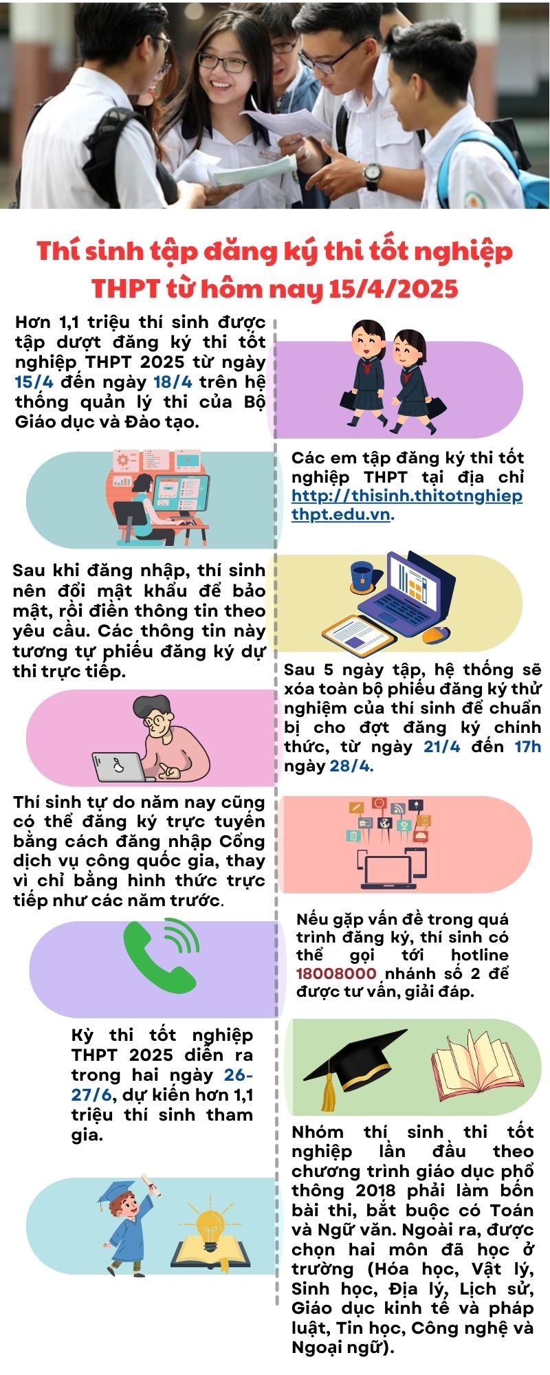 Bộ Giáo dục và Đào tạo hướng dẫn thí sinh tập dượt đăng ký thi tốt nghiệp THPT 2025 từ ngày 15/4 đến ngày 18/4.