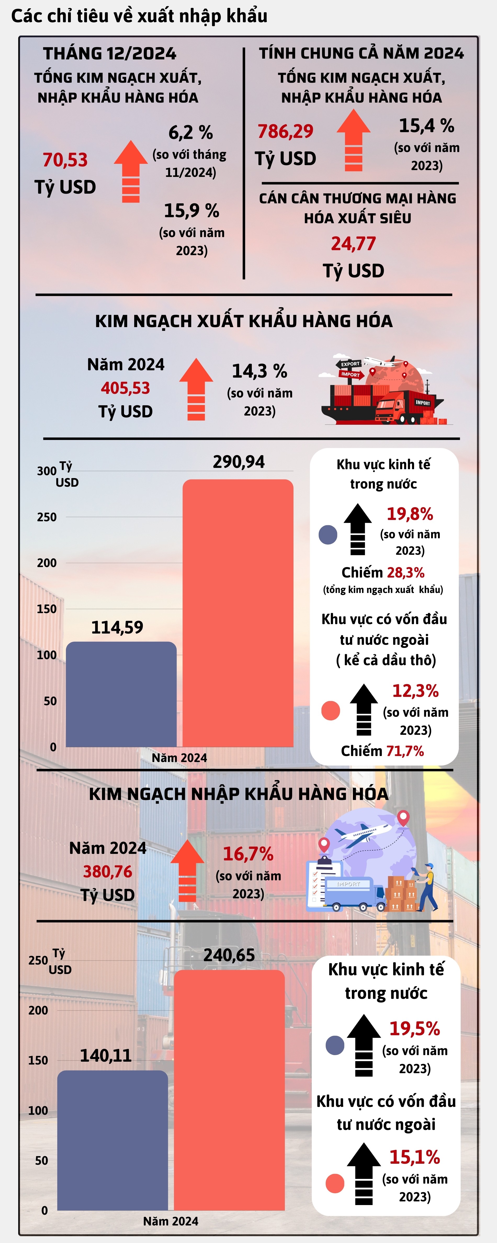 Năm 2024 là năm thứ tư thực hiện kế hoạch 5 năm phát triển kinh tế - xã hội giai đoạn 2021-2025 với nhiệm vụ nặng nề là phấn đấu cao nhất để đạt được các mục tiêu đã đề ra trong bối cảnh các năm đầu của kỳ kế hoạch gặp nhiều khó khăn do đại dịch Covid-19 và biến động địa chính trị toàn cầu. Không những vậy, năm 2024, kinh tế trong nước còn đối mặt với diễn biến thiên tai bất lợi, đặc biệt, siêu bão số 3 và cơn bão số 4 đã tàn phá, gây thiệt hại nặng nề, trên diện rộng tại các tỉnh phía Bắc và miền Trung.