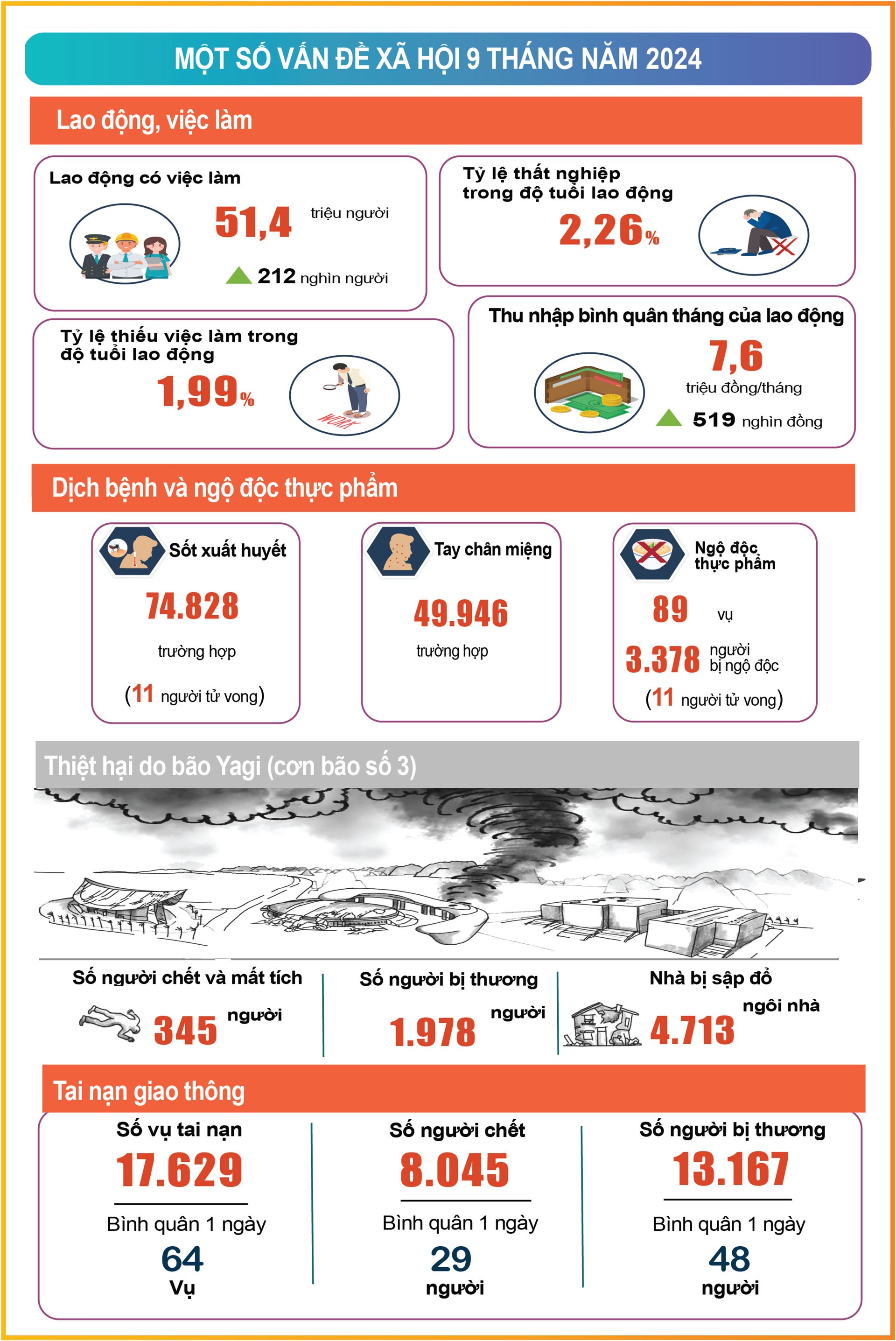 Mặc dù tình hình thế giới bất ổn và thiệt hại nặng nề từ cơn bão số 3 ở trong nước, song với quyết tâm nhanh chóng khắc phục hậu quả của bão lũ, sớm ổn định đời sống của nhân dân, đẩy mạnh khôi phục sản xuất, kinh doanh, giữ vững ổn định kinh tế vĩ mô, tích cực thúc đẩy tăng trưởng kinh tế, Chính phủ, Thủ tướng Chính phủ quyết liệt chỉ đạo các Bộ, ngành, địa phương tiếp tục thực hiện các giải pháp khắc phục hậu quả bão số 3; phát triển kinh tế - xã hội, dự toán ngân sách nhà nước và cải thiện môi trường kinh doanh, nâng cao năng lực cạnh tranh quốc gia năm 2024.