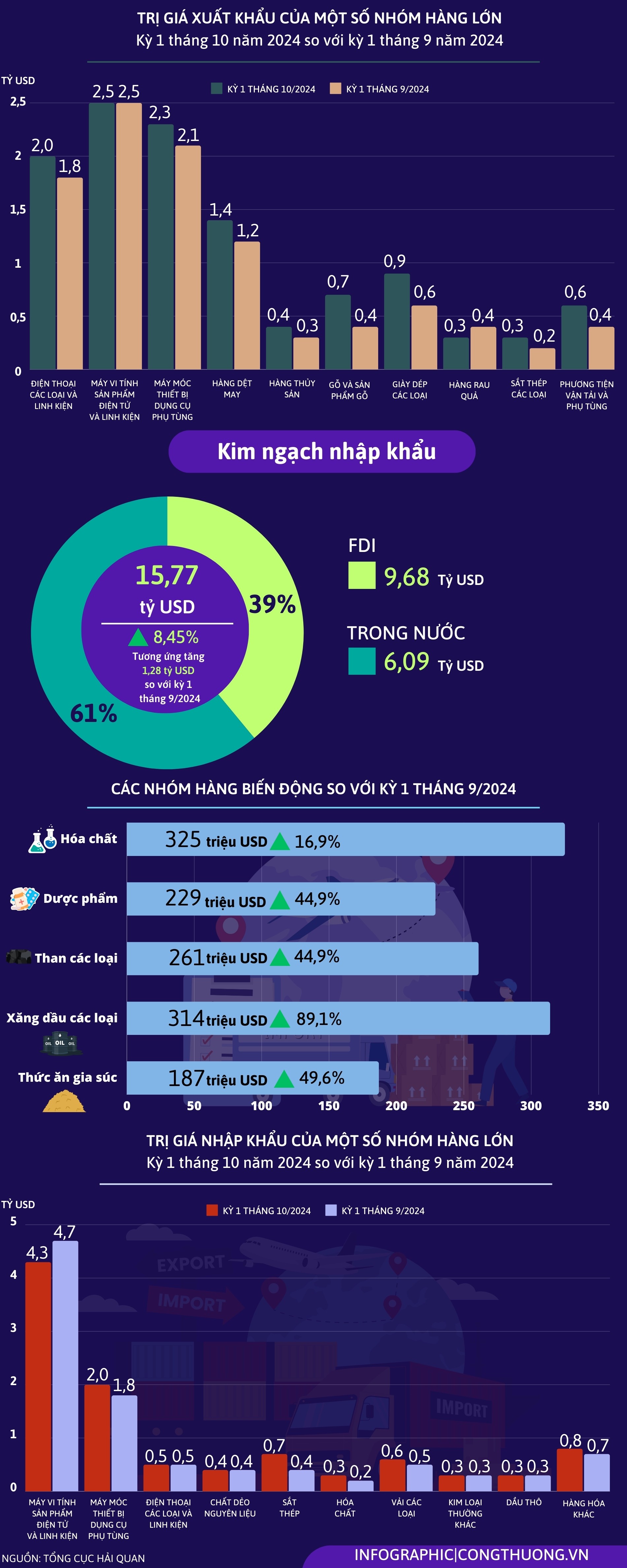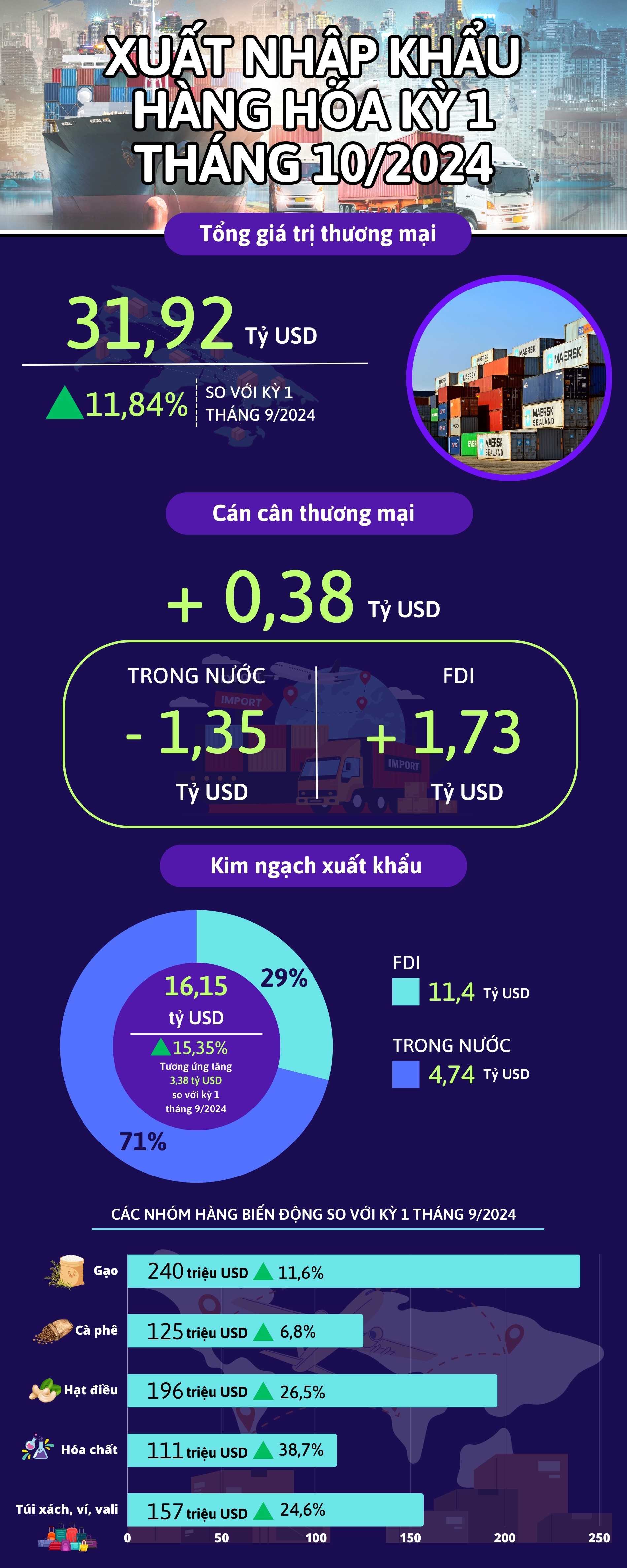 Infographic | Xuất nhập khẩu hàng hóa kỳ 1 tháng 10/2024