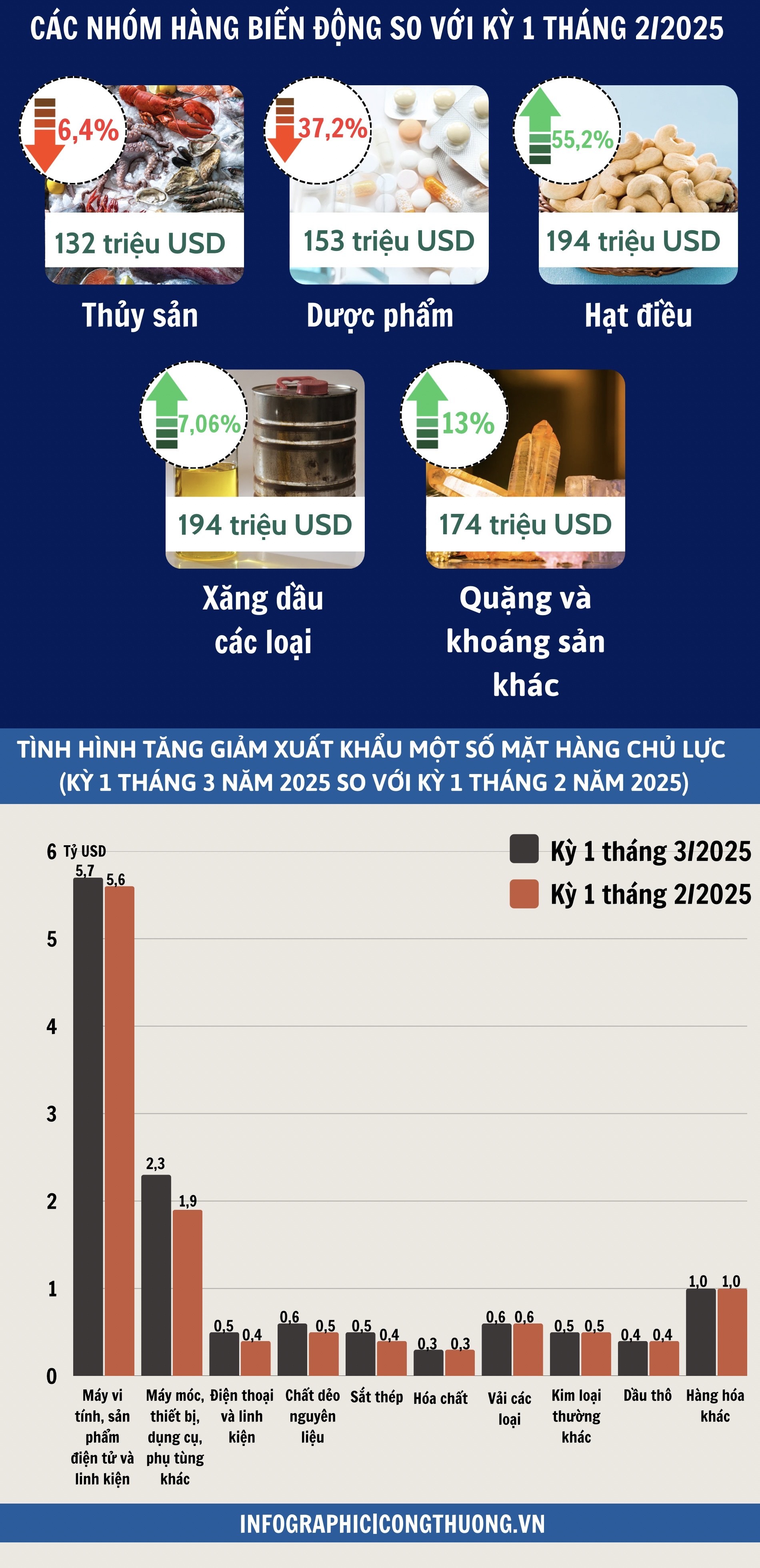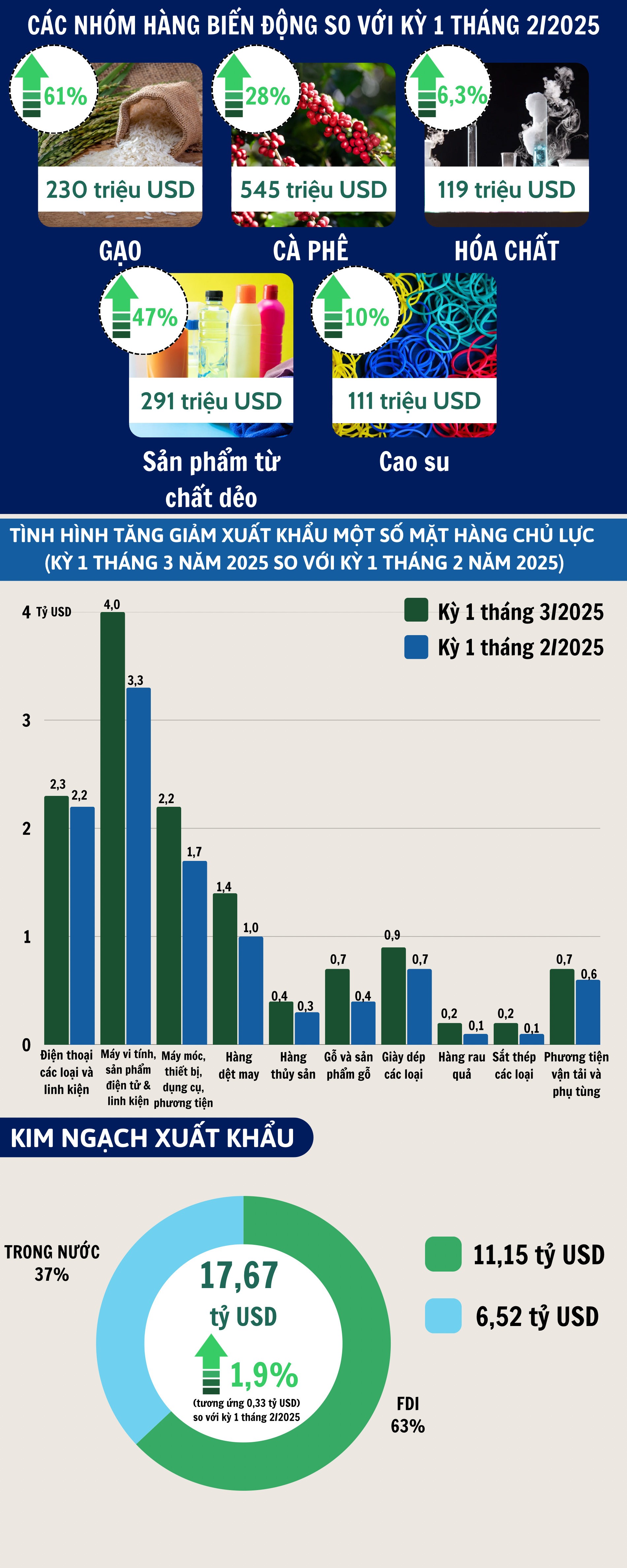 Infographic | Xuất nhập khẩu hàng hóa kỳ 1 tháng 3/2025