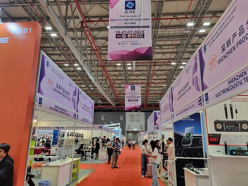 Chuỗi triển lãm sự kiện chuyên ngành gồm: Triển lãm quốc tế điện tử và thiết bị thông minh (IEAE); Triển lãm quốc tế quà tặng và đồ gia dụng 2023 (IGHE); Triển lãm quốc tế sản phẩm và đồ chơi trẻ em (IBTE) đã khai mạc ngày 19/7/2023 tại TP. Hồ Chí Minh.