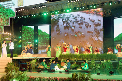 Tiết mục tái hiện cảnh đẹp thiên nhiên và phong tục, tập quán, cuộc sống của người dân ĐBSCL. Ảnh: VGP/Thành Chung