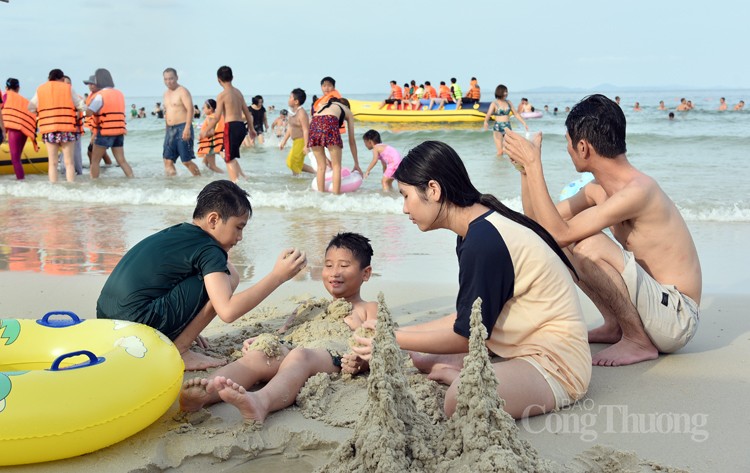 | Du khách tận hưởng không gian đầy nắng gió, hương vị mặn mòi của biển |