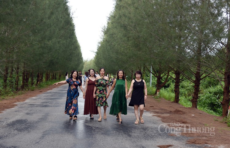 Dạo mát trên cung đường chính trên đảo Quan Lạn với hai hàng thông xanh rì thẳng tắp đẹp mê li. Chỉ cần đứng giữa đường và tạo dáng tự nhiên nhất là du khách đã có một bức ảnh như trời Âu. Trên đảo không đông dân cư nên trục đường chính khá vắng vẻ. Đây cũng là điểm check in lý tưởng cho mỗi du khách.
