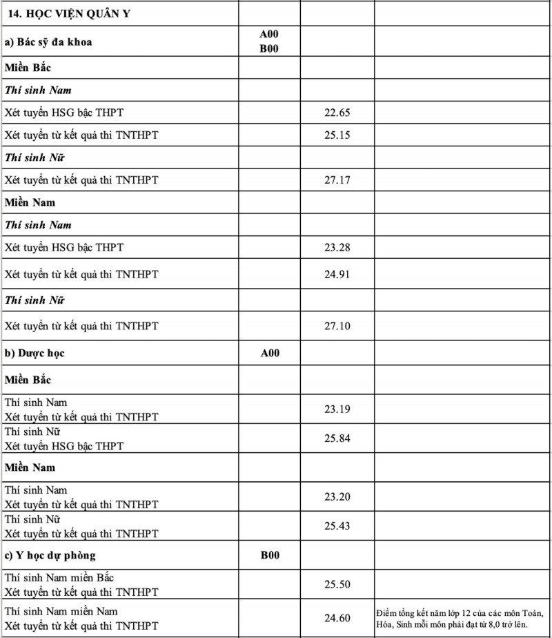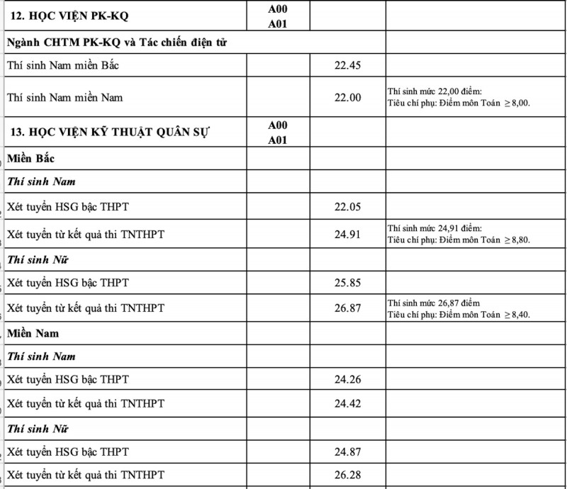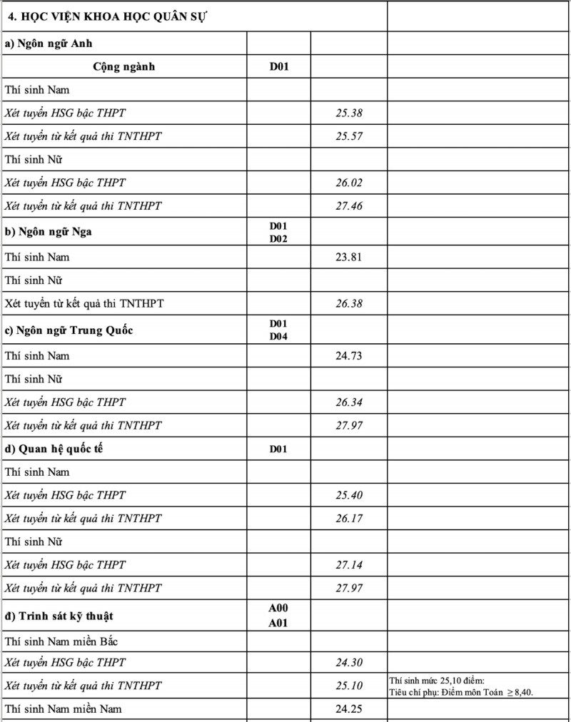 Điểm chuẩn Học viện Khoa học Quân sự: