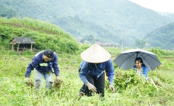 | Các hộ đồng bào chăm sóc cây lạc theo đúng quy trình kỹ thuật |