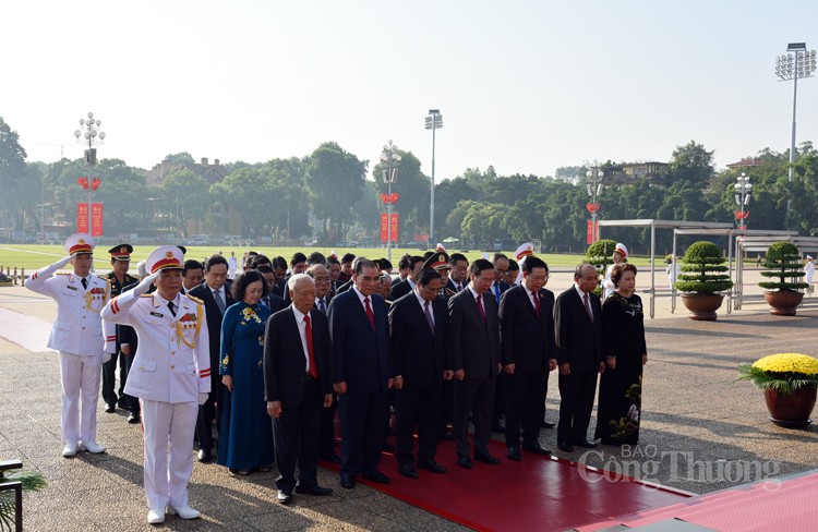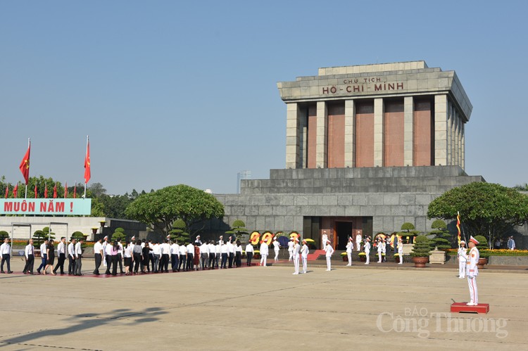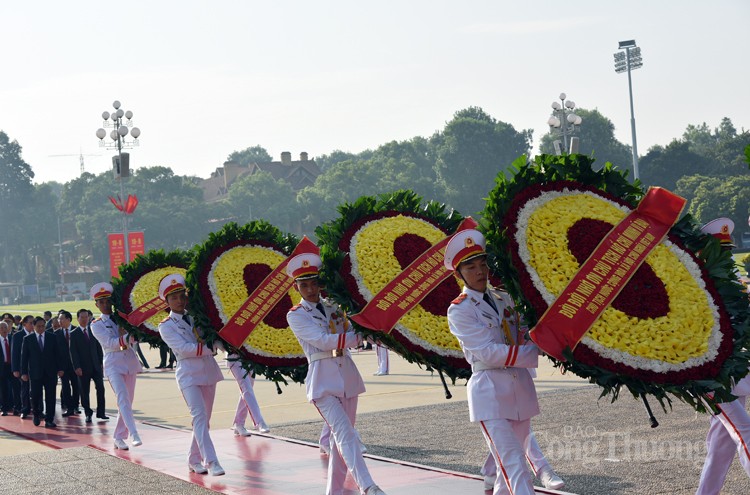 Đoàn lãnh đạo Đảng, Nhà nước vào Lăng viếng Chủ tịch Hồ Chí Minh gồm có: Chủ tịch nước Võ Văn Thưởng; Thủ tướng Phạm Minh Chính; Chủ tịch Quốc hội Vương Đình Huệ; các đồng chí Ủy viên Bộ Chính trị, nguyên Ủy viên Bộ Chính trị; Bí thư Trung ương Đảng và lãnh đạo các ban, bộ, ngành, đoàn thể Trung ương… Vòng hoa của Đoàn mang dòng chữ “Đời đời nhớ ơn Chủ tịch Hồ Chí Minh vĩ đại”.