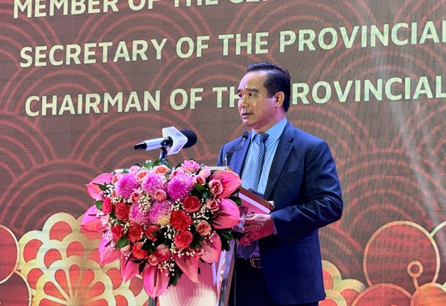| Ông Nguyễn Văn Được, Bí thư Tỉnh ủy, Chủ tịch HĐND tỉnh phát biểu chúc mừng họp mặt. Ảnh: Cổng thông tin điện tử tỉnh Long An |