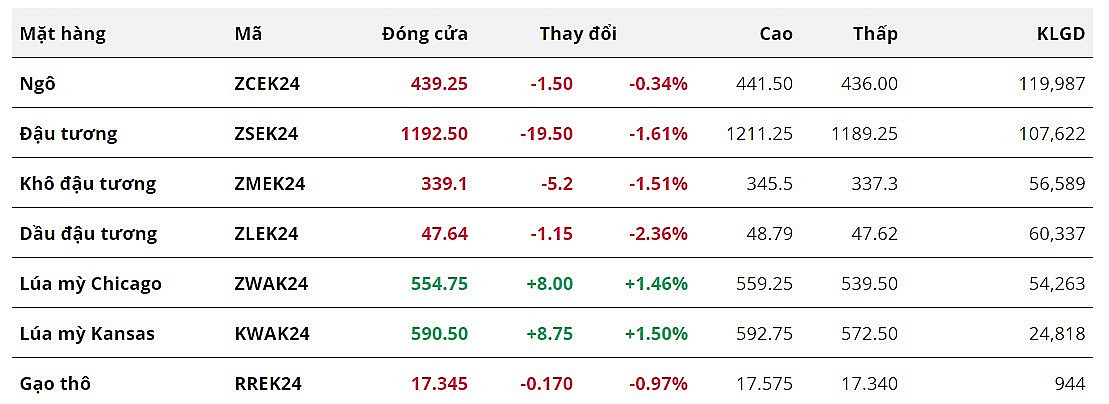 Trong khi các mặt hàng họ đậu ghi nhận mức lao dốc mạnh do thông tin về mùa vụ của Argentina thì lúa mì lại là mặt hàng nông sản duy nhất tăng giá.