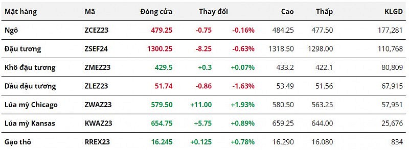 Giá ngô ghi nhận phiên giảm thứ 5 liên tiếp. Đợt khô hạn trong thời gian vừa qua đã trì hoãn hoạt động trồng ngô vụ mới ở Argentina, đồng thời cũng cản trở hoạt động xuất khẩu ngô của Brazil do mực nước sông Amazon giảm xuống mức thấp kỷ lục. Tuy nhiên, cả hai quốc gia này đều nhận được lượng mưa cần thiết trong những ngày gần đây, giúp giảm bớt đáng kể tác động tiêu cực của khô hạn.