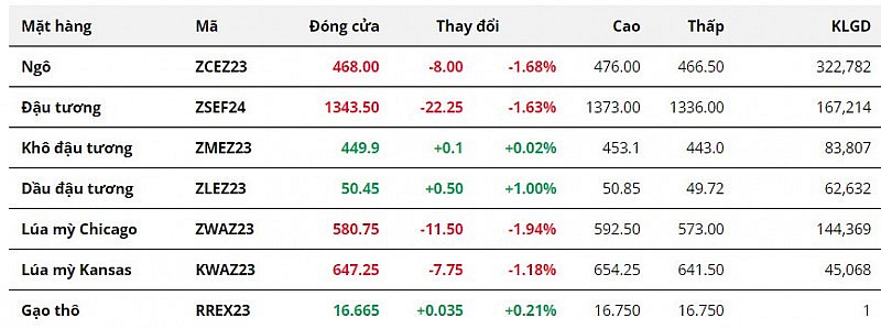Đối với ngô, USDA đã điều chỉnh tăng năng suất niên vụ 23/24 của Mỹ lên mức 174,9 giạ/mẫu, cao hơn mức 173,8 giạ/mẫu theo dự đoán của thị trường. Với năng suất tăng lên trong khi diện tích canh tác không thay đổi, sản lượng niên vụ 23/24 của Mỹ cũng được nâng dự báo lên 15,23 tỷ giạ so với ước tính 15,06 tỷ giạ trong báo cáo tháng 9. Những số liệu này đã giúp xoa dịu những lo ngại trước đó của thị trường về vụ ngô bị tổn thất do hạn hán kéo dài, và tác động “bearish” mạnh mẽ đến giá.