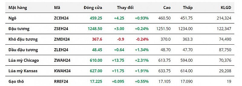 Hầu hết các mặt hàng nông sản hồi phục trở lại sau phiên lao dốc trước đó, với lực mua chủ yếu được thúc đẩy bởi hỗ trợ kỹ thuật. Lúa mì tiếp tục là mặt hàng đáng chú ý nhất cả nhóm, khi bật tăng 2,31% vào hôm qua. Trong khi đó, ngô và đậu tương cũng tăng nhẹ trong phiên vừa rồi, trong bối cảnh những thông tin về nguồn cung Brazil vẫn là yếu tố chính chi phối giá.
