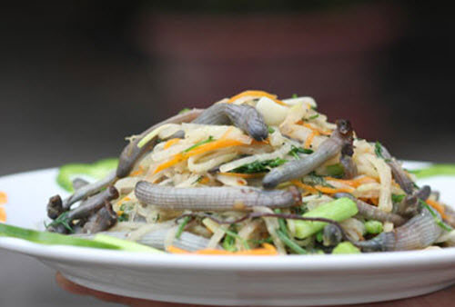 Ngon nhất là sá sùng tươi xào tỏi, rau muống hay xào chua ngọt ăn giòn mà mềm, thơm mà ngọt. Sá sùng khô rang lên chấm tương ớt, thêm dăm ngọn rau thơm, diếp cá nhấm cùng bia lại mang đến một thú ẩm thực riêng. Hay sá sùng hầm thuốc bắc cũng được coi là một món “thần dược” dành cho nam giới. Ảnh: loca