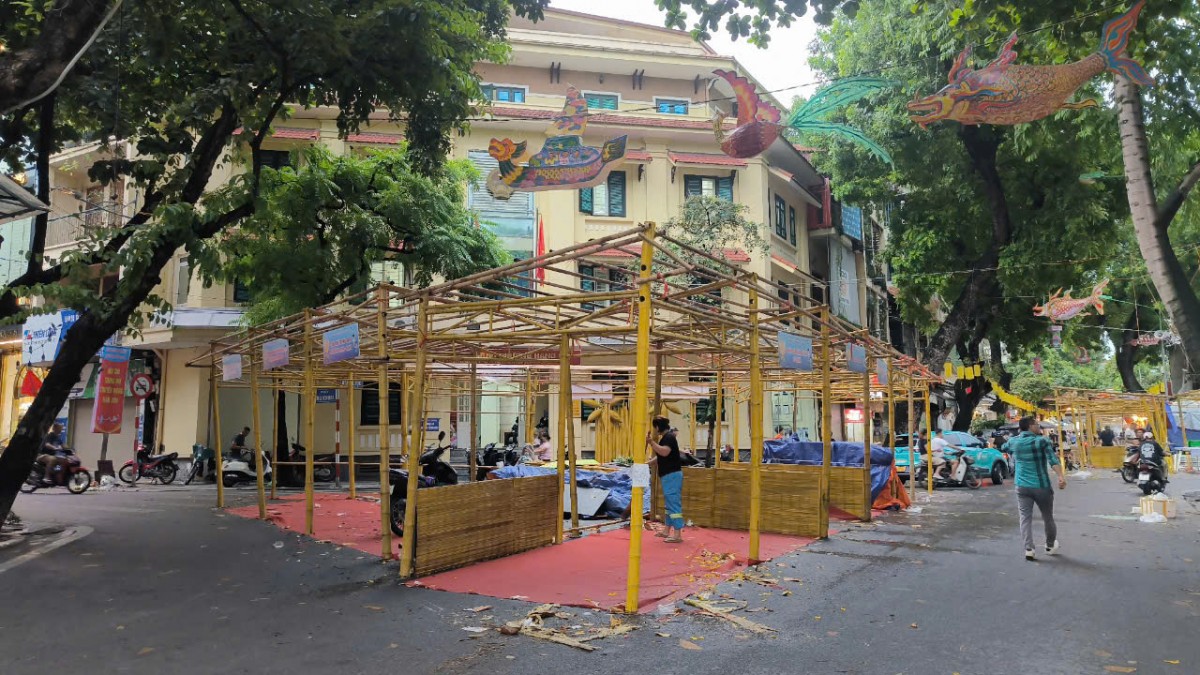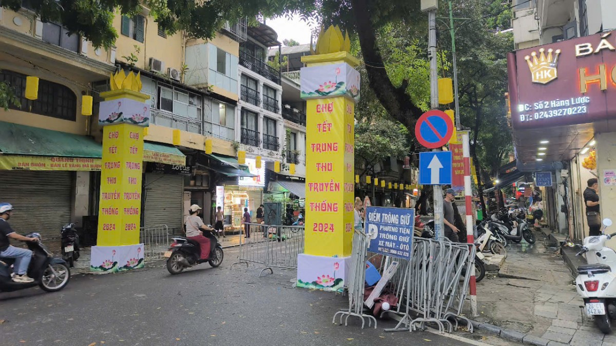 | Các gian hàng bày bán đồ Trung thu truyền thống tại khu vực phố Hàng Lược đã được yêu cầu di chuyển. Ảnh: Quang Lộc |