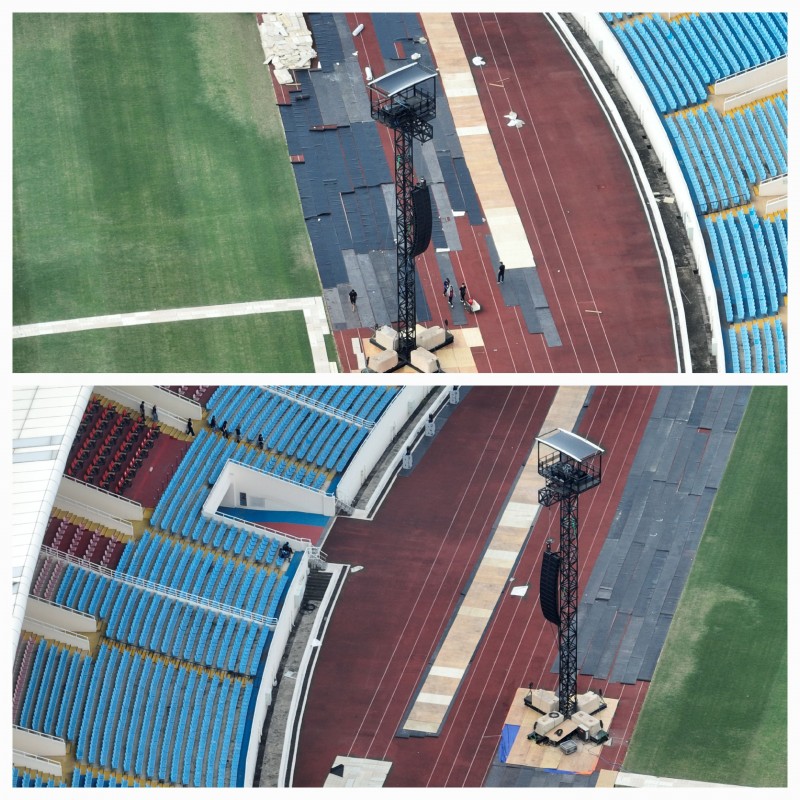 Hiện toàn bộ phần sân khấu biểu diễn cơ bản đã xong phần khung, đội ngũ kỹ thuật đang gấp rút hoàn thiện những công đoạn cuối cùng |