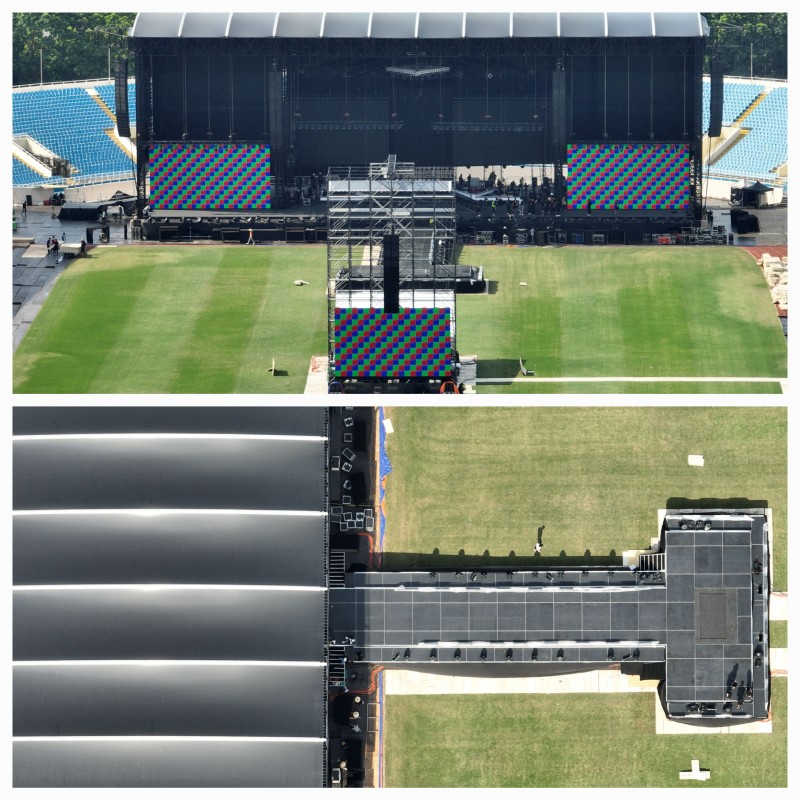 Ghi nhận của phóng vào sáng nay (27/7), cách buổi diễn chính thức hai ngày, hình hài của một sân khấu quy mô lớn đang được hoàn thiện để phục vụ 2 đêm nhạc.