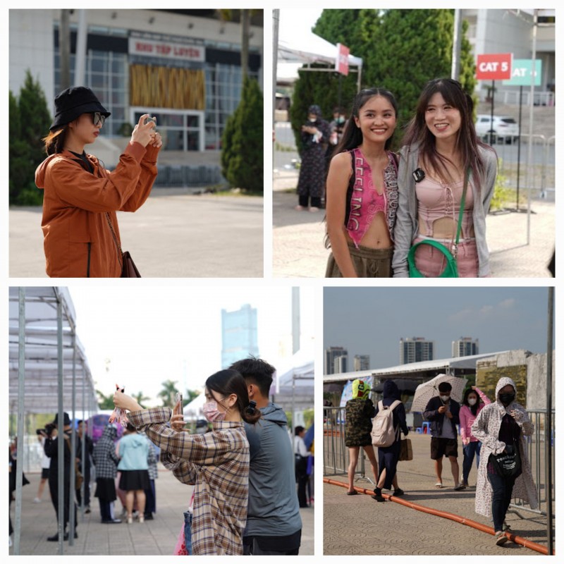 Dưới thời tiết nắng nóng nhưng nhiều khán giả, đa phần là giới trẻ đã có mặt tại sân vận động Mỹ Đình để nhận vòng |