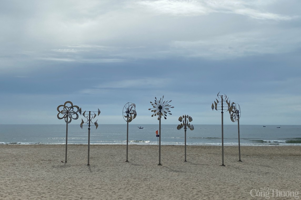 | Một trong những điểm nhấn của đường hoa biển Đà Nẵng là cụm trang trí “Vườn hoa gió” tại bãi biển trước Công viên Lăng Ông với thiết kế từ vật liệu inox, có thể xoay khi có gió biển |