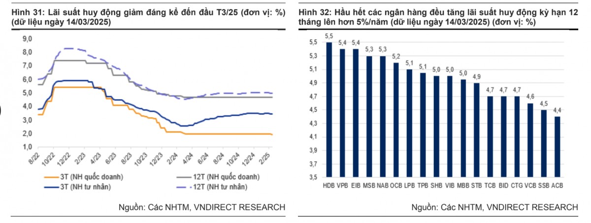 | Nhìn chung, kỳ vọng lãi suất huy động sẽ duy trì ổn định ở mức này, và điều chỉnh dự báo lãi suất huy động bình quân 12 tháng xuống còn 4,8- 5,0%/năm, giảm so với mức dự báo trước đó là 5,4%, nhằm phản ánh định hướng nới lỏng chính sách tiền tệ để hỗ trợ tăng trưởng kinh tế của Ngân hàng Nhà nước. |