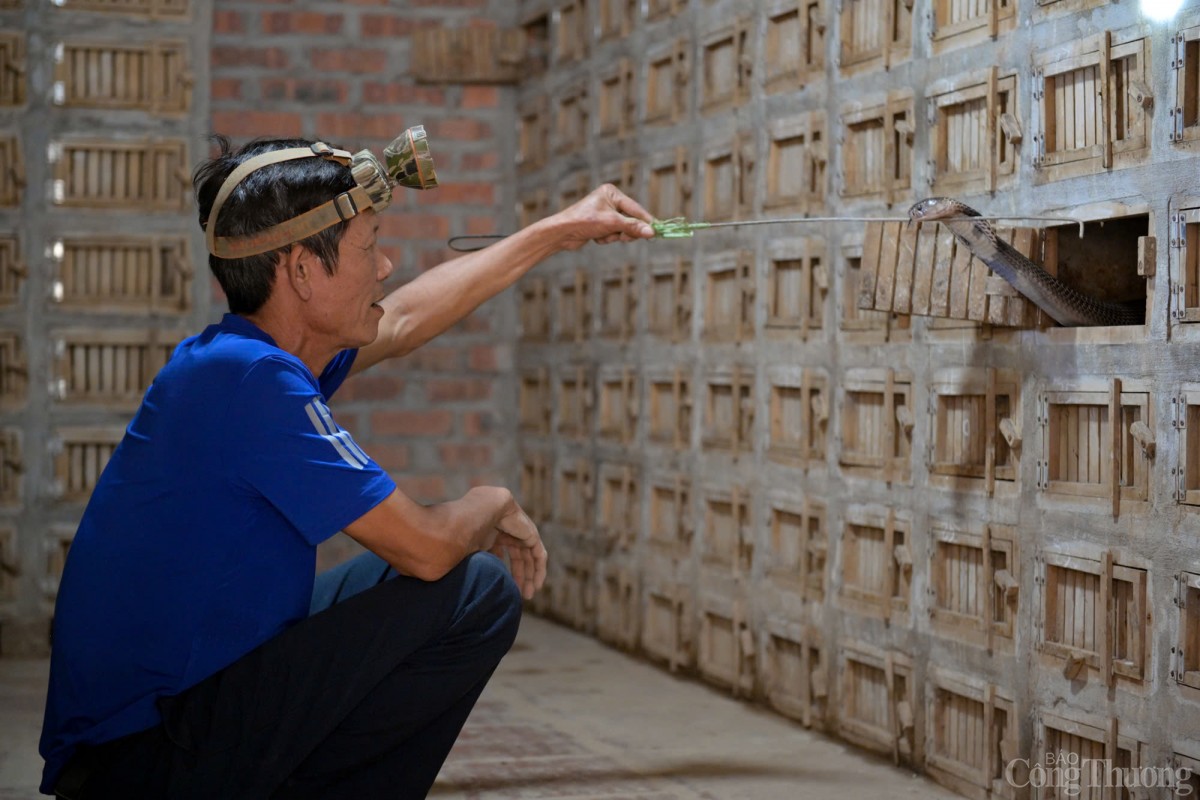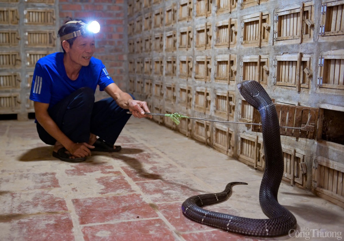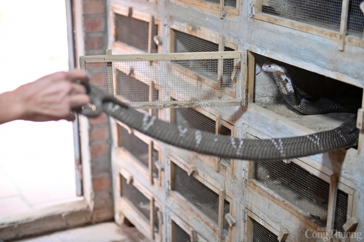 | Ông Phạm Văn Hùng (thôn 2, Vĩnh Sơn, Vĩnh Yên, Vĩnh Phúc), có gần 30 năm kinh nghiệm nuôi rắn. Hiện tại gia đình ông Hùng đang nuôi khoảng 300 con rắn hổ mang bành. |