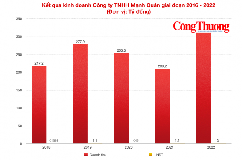 Cụ thể, doanh thu giai đoạn 2018 - 2022 của nhà thầu đạt lần lượt 217,2 tỷ đồng, 277,9 tỷ đồng, 253,3 tỷ đồng, 209,2 tỷ đồng và 313,8 tỷ đồng. Tăng giảm đan xen, nhưng có thể thấy Công ty Mạnh Quân chẳng mấy chịu ảnh hưởng từ diễn biến trái chiều của thị trường xây dựng và bất động sản.
