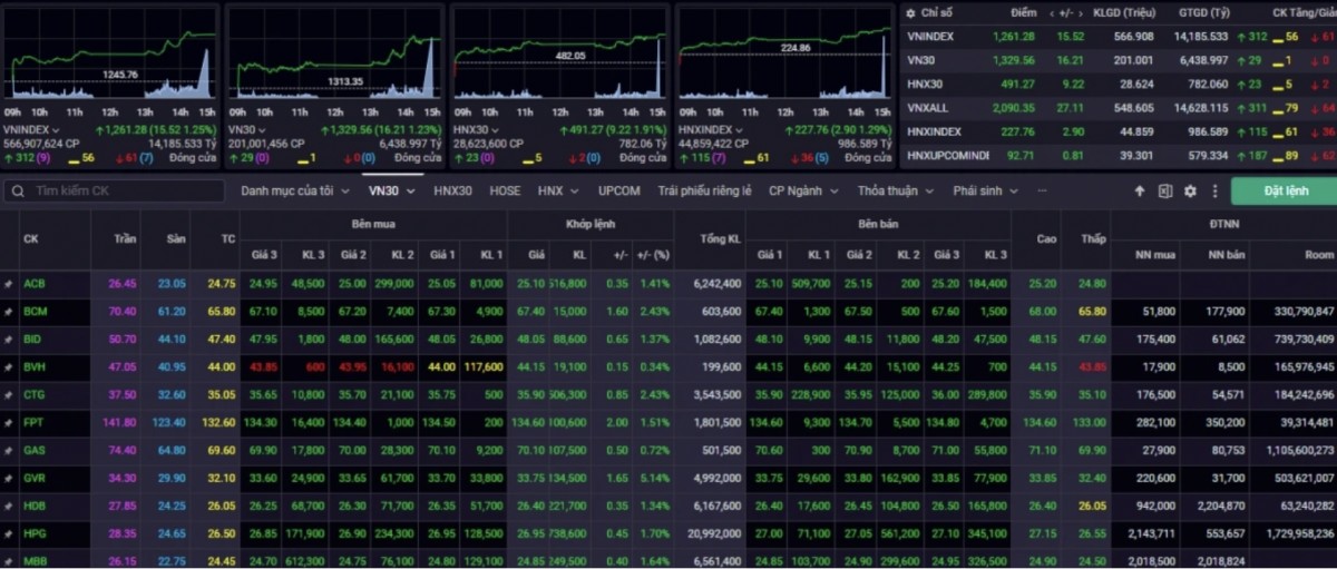 | Chứng khoán Việt tràn ngập sắc xanh sau bầu cử Tổng thống Mỹ. Ảnh chụp màn hình |