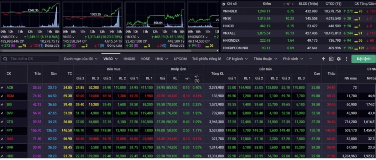 | Kết tuần giao dịch 13-17/1, VN-Index tăng 1,51% lên mức 1.249 điểm. Ảnh chụp màn hình |